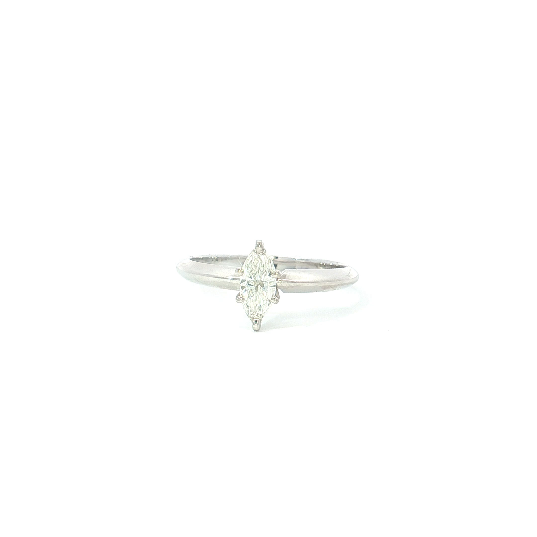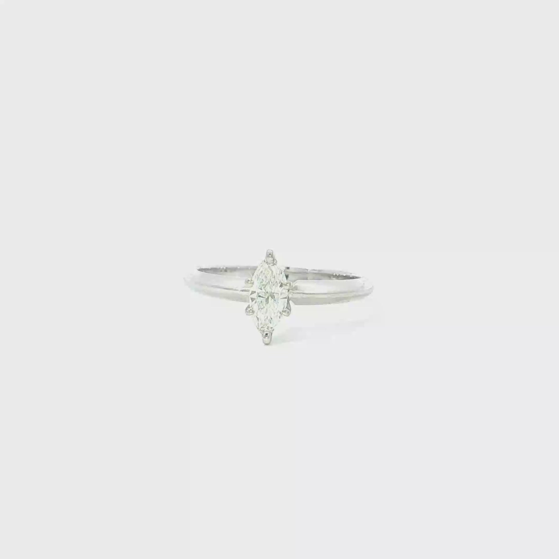 Elegant and timeless, this platinum solitaire ring showcases a marquise cut diamond. The brilliant cutting style enhances the diamond's natural sparkle, creating a mesmerizing play of light. A classic symbol of enduring love, this ring offers sophistication and grace.