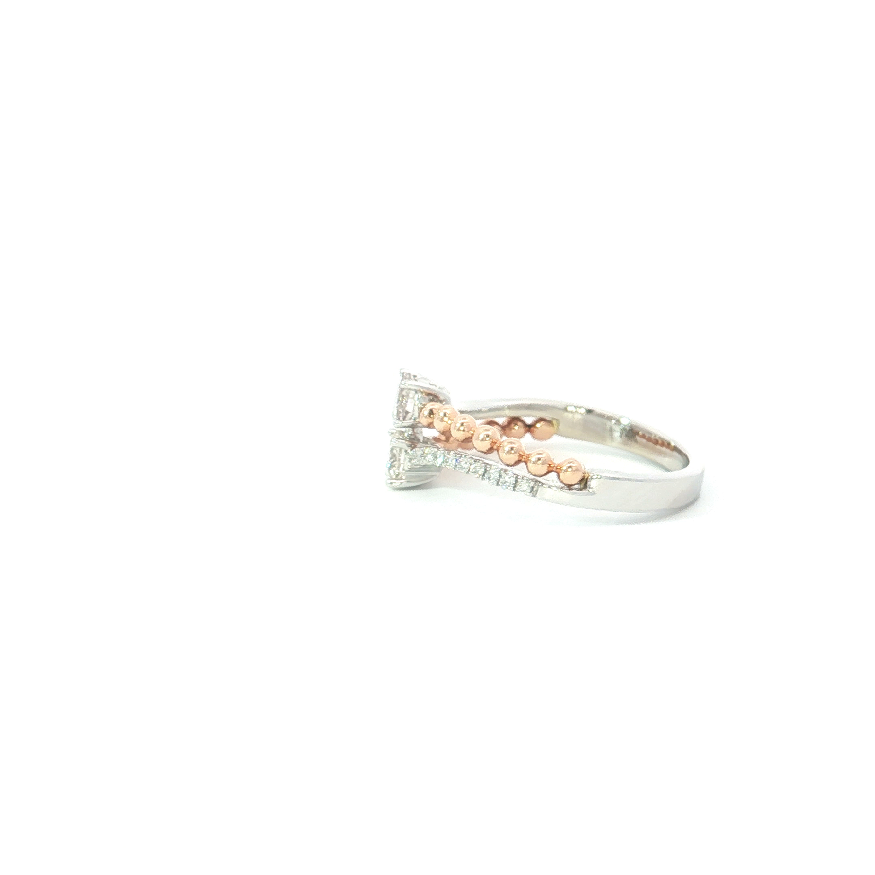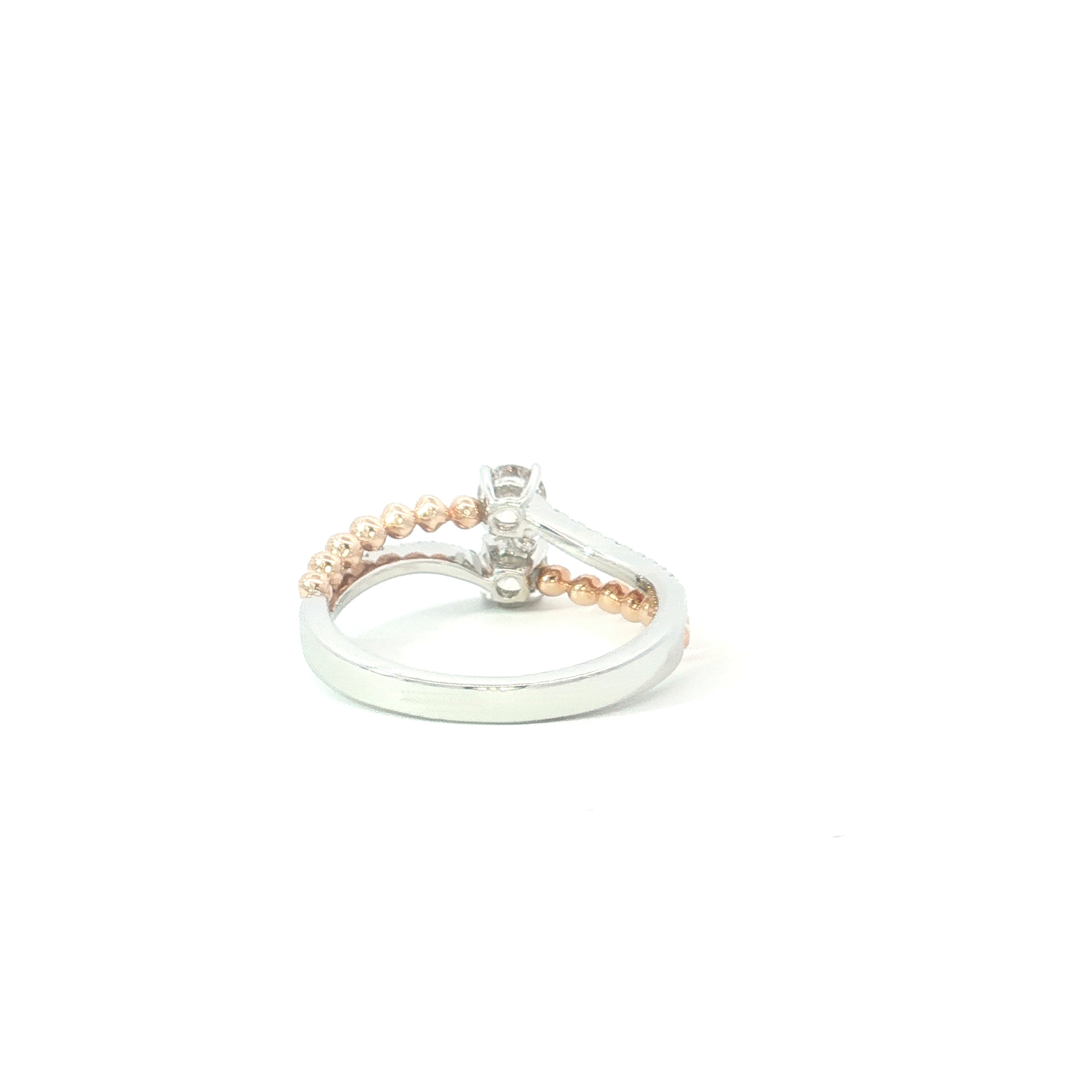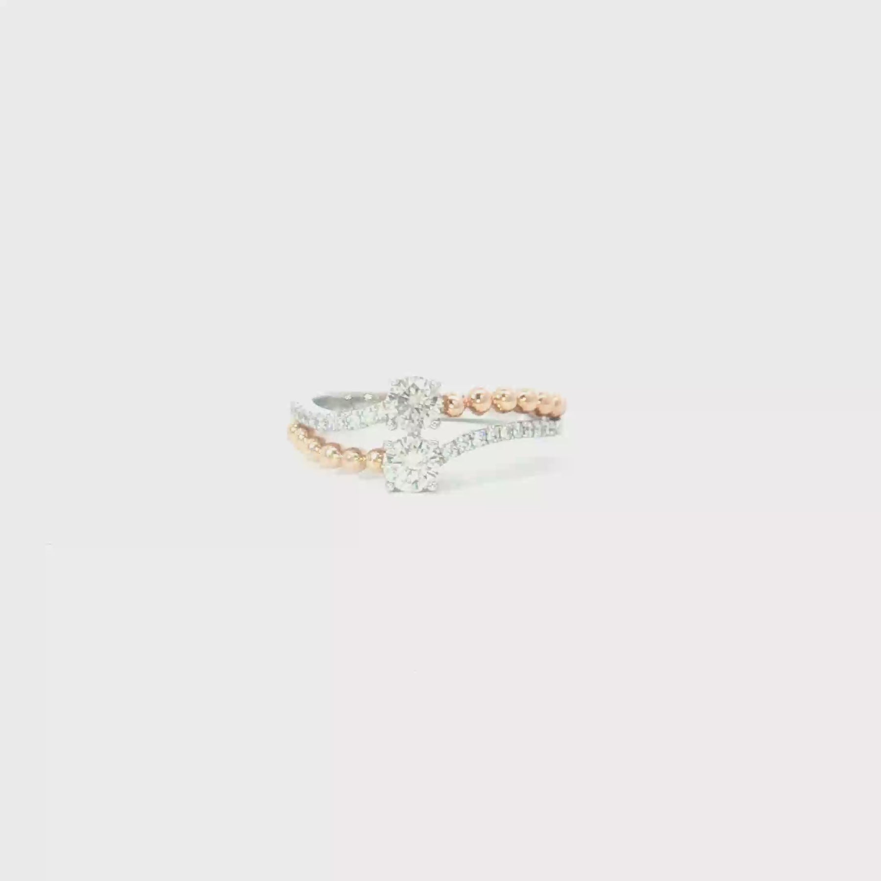 This beautiful multi-stone ring is crafted from rose gold. It features two round cut diamonds that offer incredible brilliance. The ring has a modern, minimalist design with an elegant and timeless feel. Perfect for everyday wear or special occasions, this diamond ring adds a touch of sophistication to any outfit.