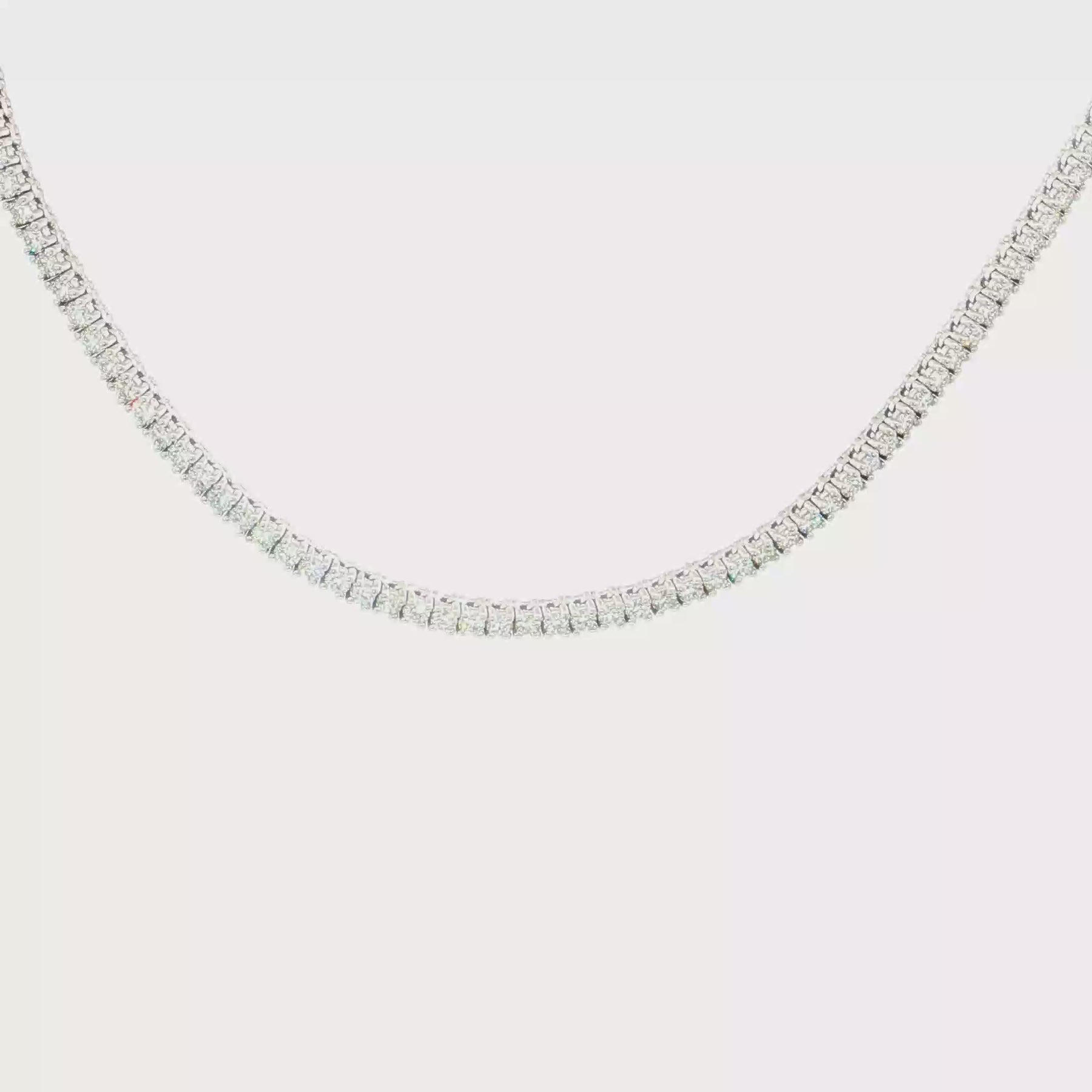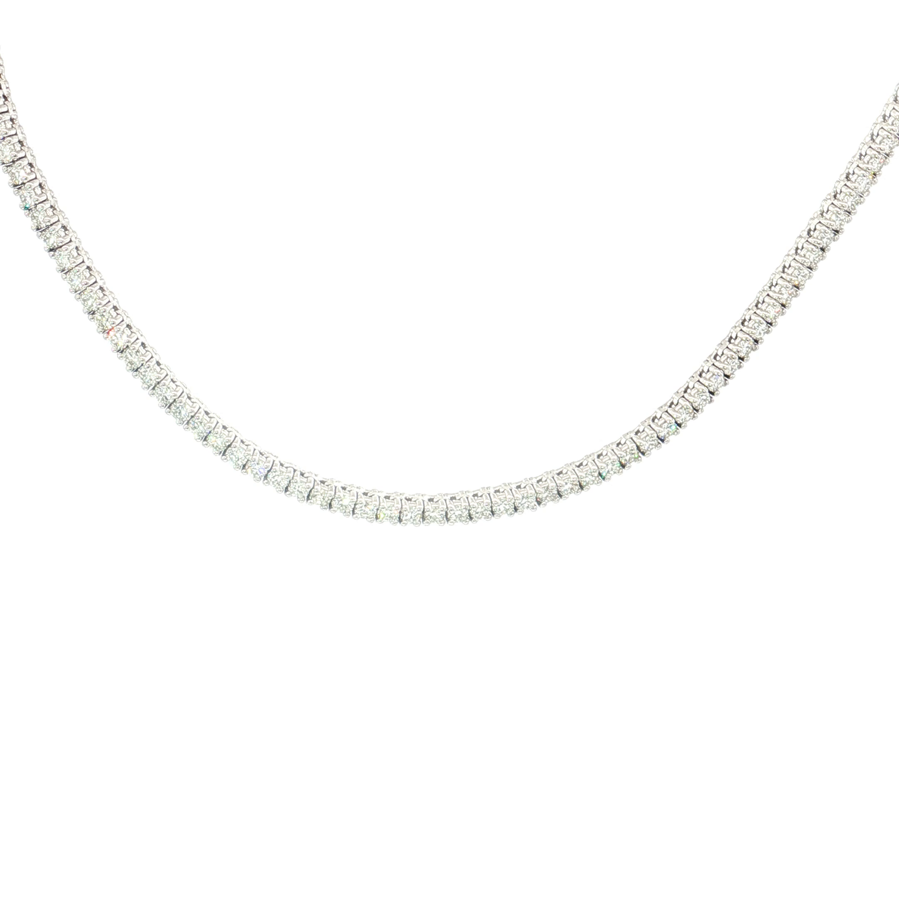 Elevate your style with this exquisite diamond tennis necklace. The continuous strand of round brilliant cut diamonds, set in sleek white gold, exudes timeless elegance and sophistication. Perfect for adding a touch of sparkle to any ensemble.