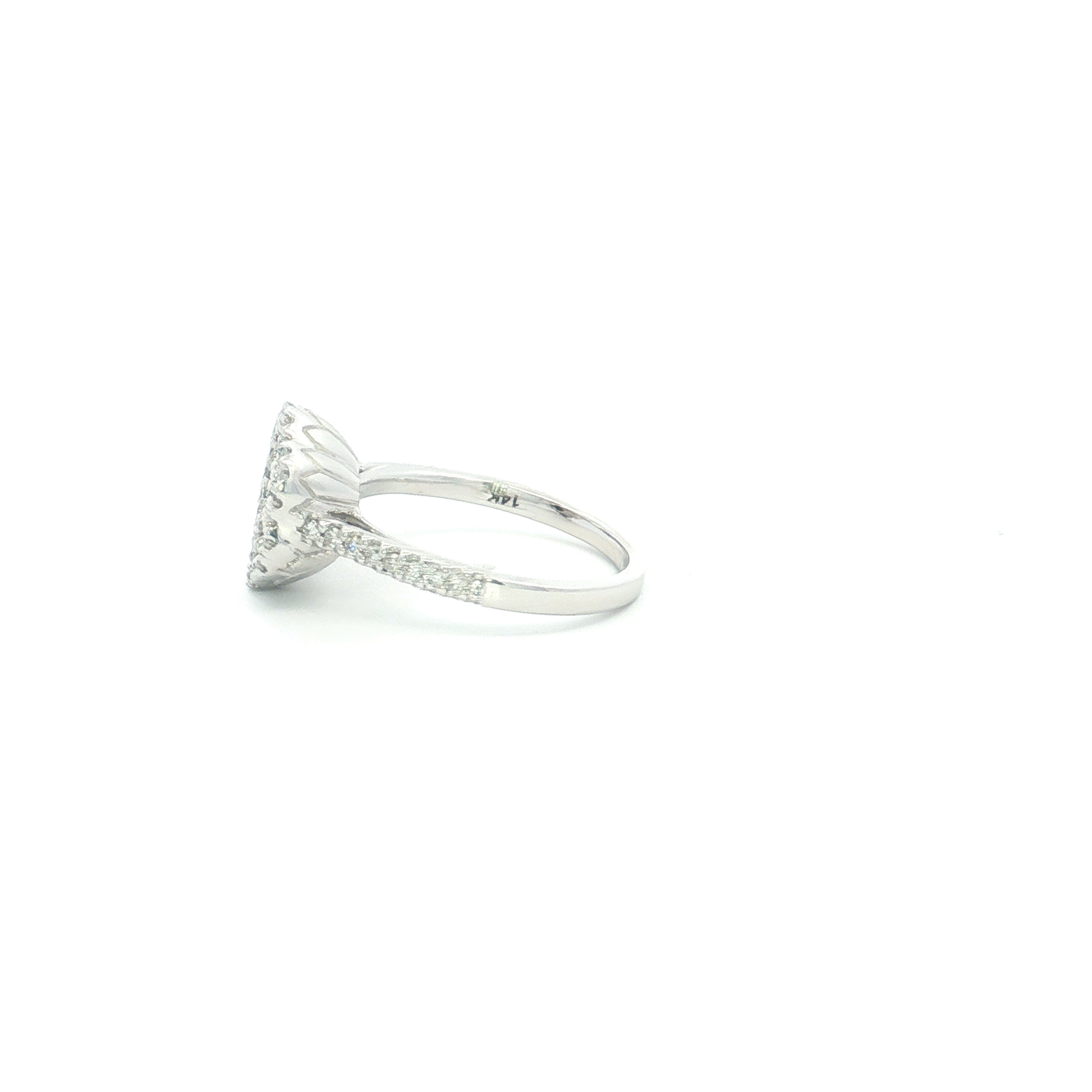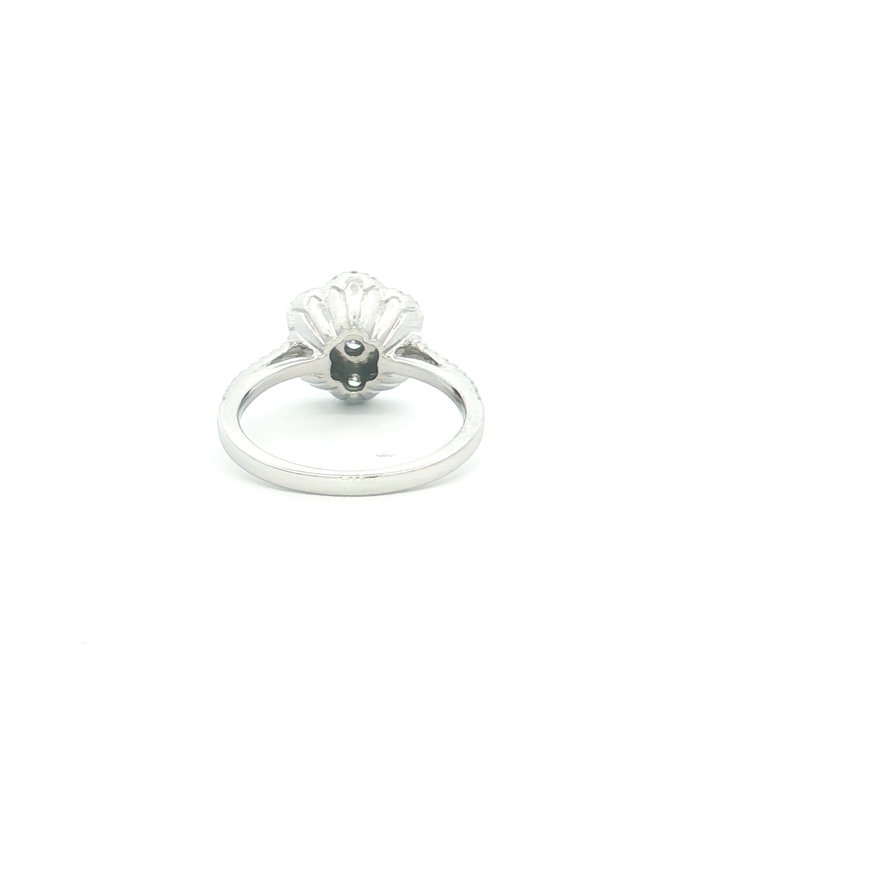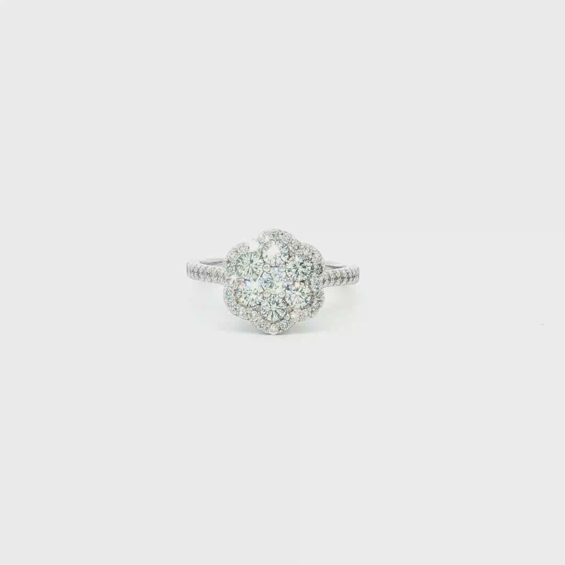 Exquisitely crafted, this cocktail ring features a central cluster of round brilliant cut diamonds set in a floral arrangement. The diamonds are meticulously set to maximize brilliance, making it a dazzling statement piece. The intricate design extends to the band, reflecting unparalleled craftsmanship and sophistication, ideal for adding a touch of luxury to any occasion.