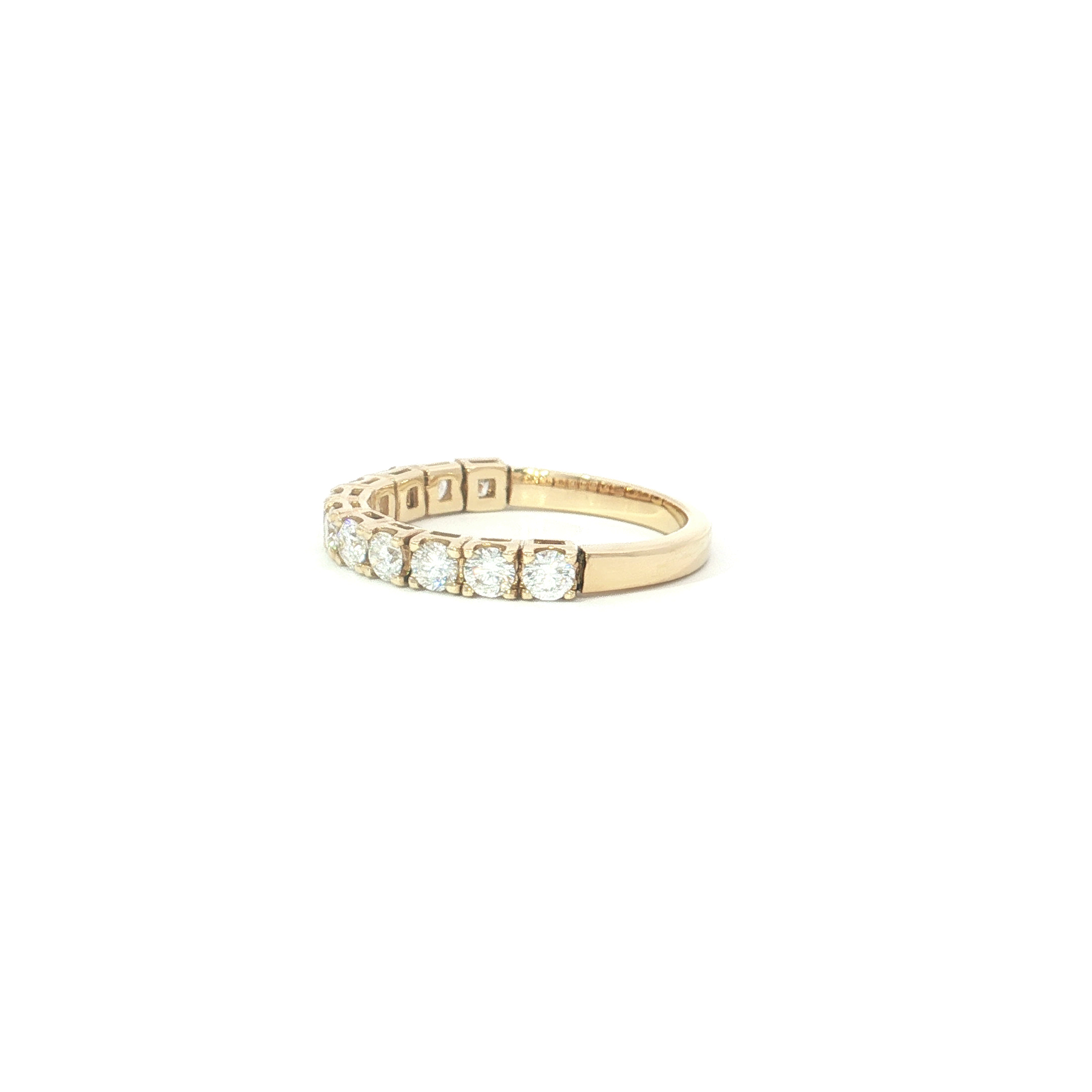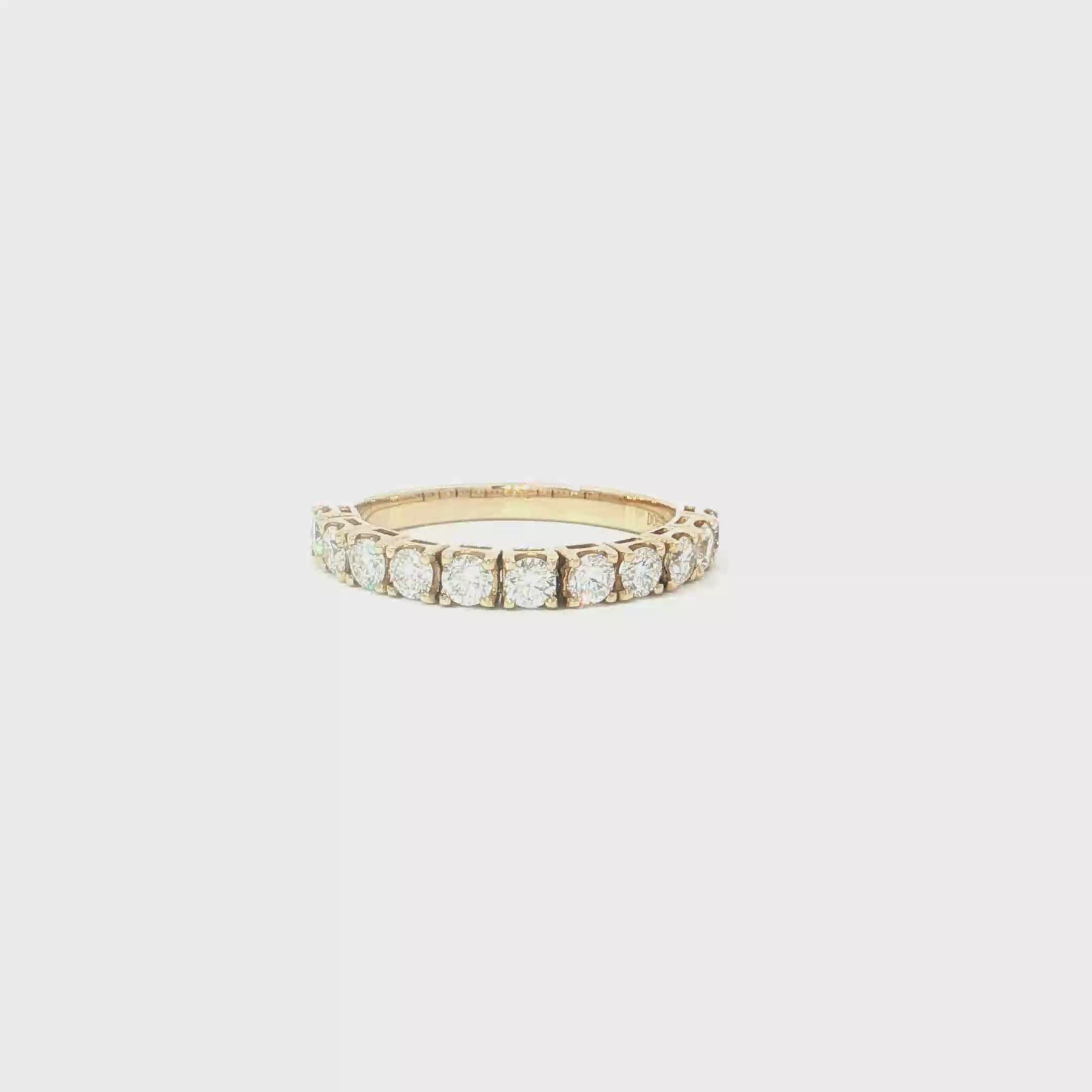 Indulge in the timeless elegance of this yellow gold eternity ring, crafted with a lustrous band that perfectly complements the array of round cut, brilliant diamonds encircling it. This ring symbolizes everlasting love and commitment. A true expression of sophisticated style.