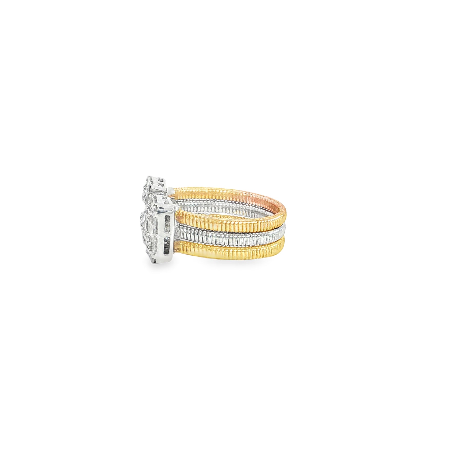 Elevate your style with this exquisite gold diamond ring. Showcasing a unique mixed cut square colorless diamond, this ring offers a modern aesthetic with a touch of timeless elegance. The combination of precious metal and the scintillation of the diamond create a captivating piece, perfect for adding a sophisticated sparkle to any ensemble.