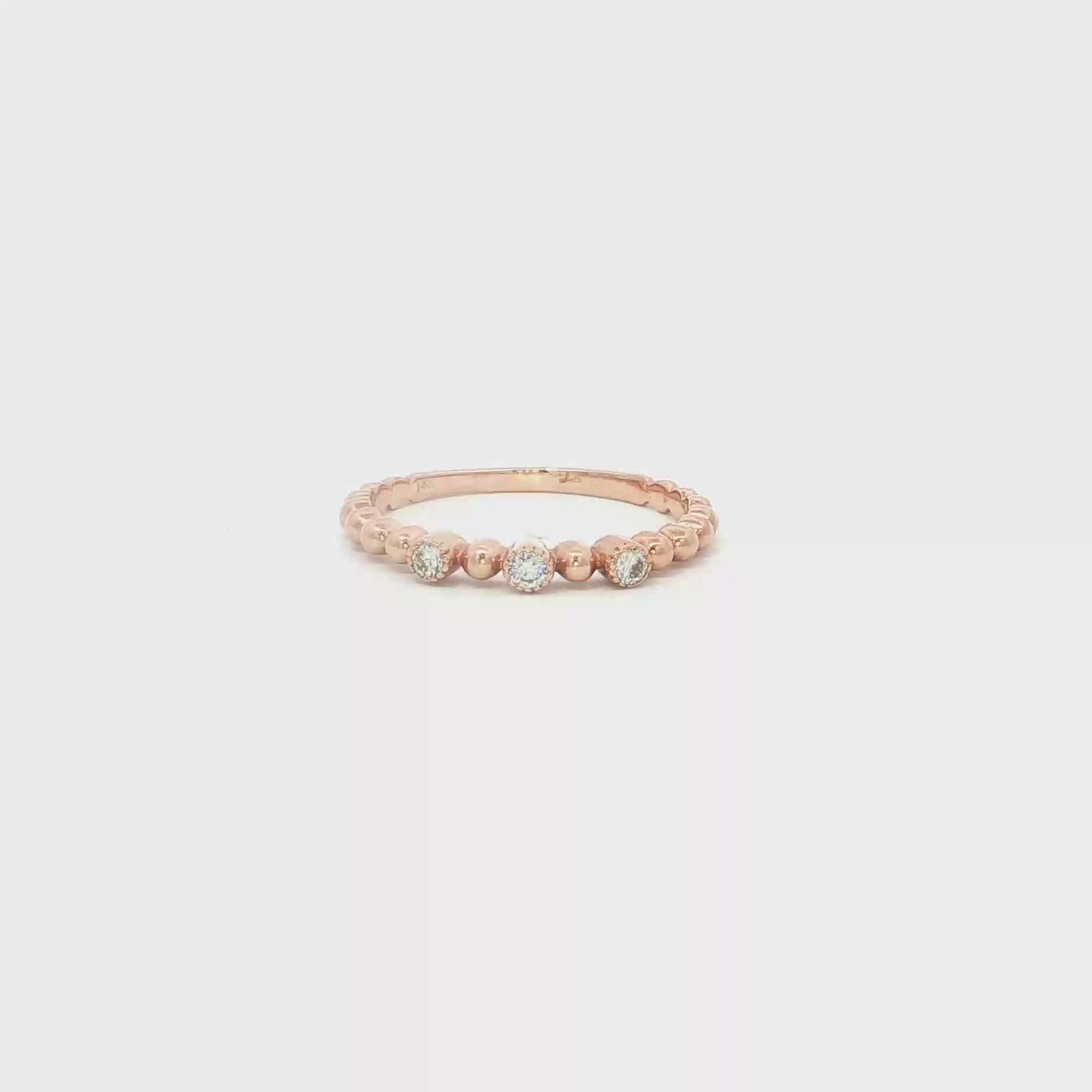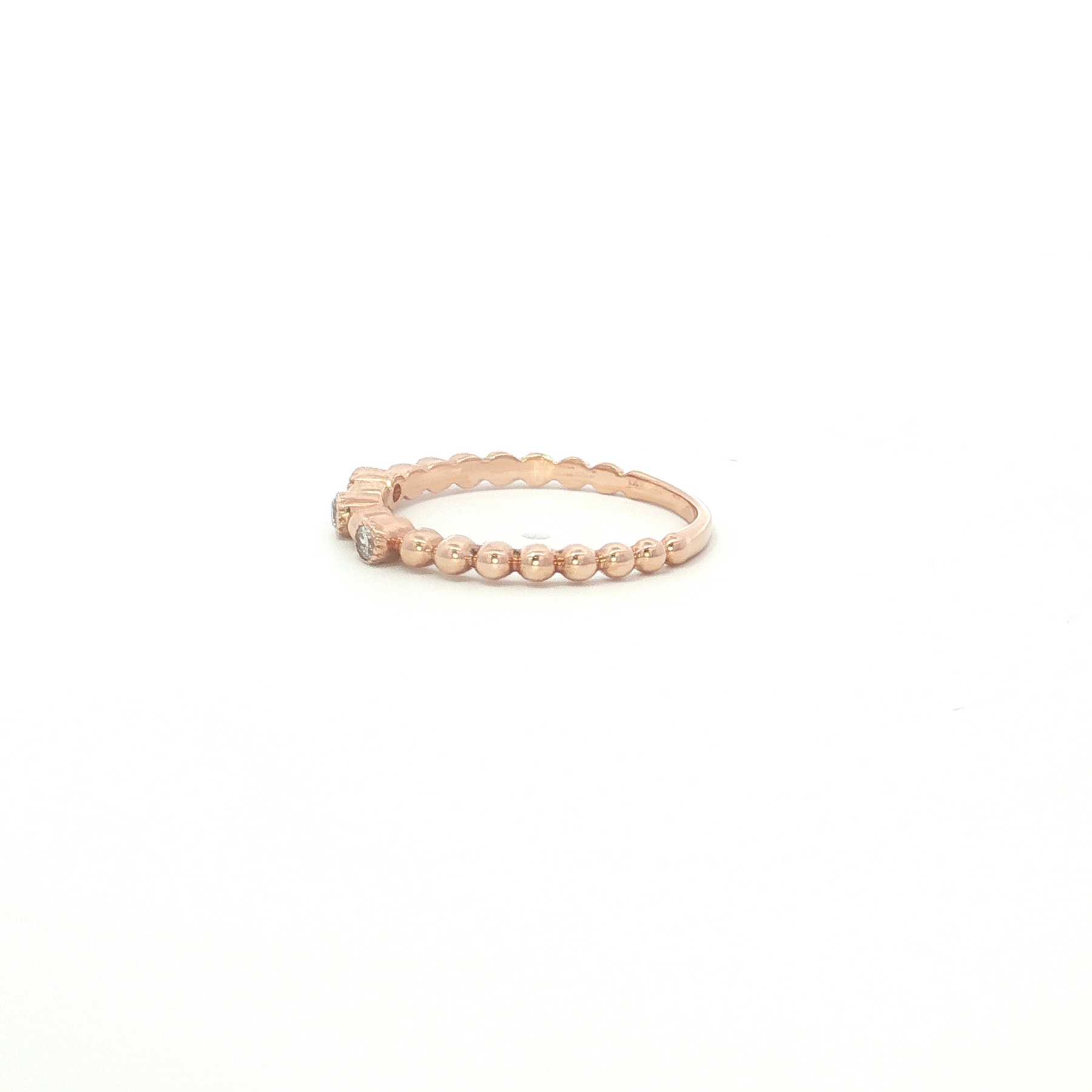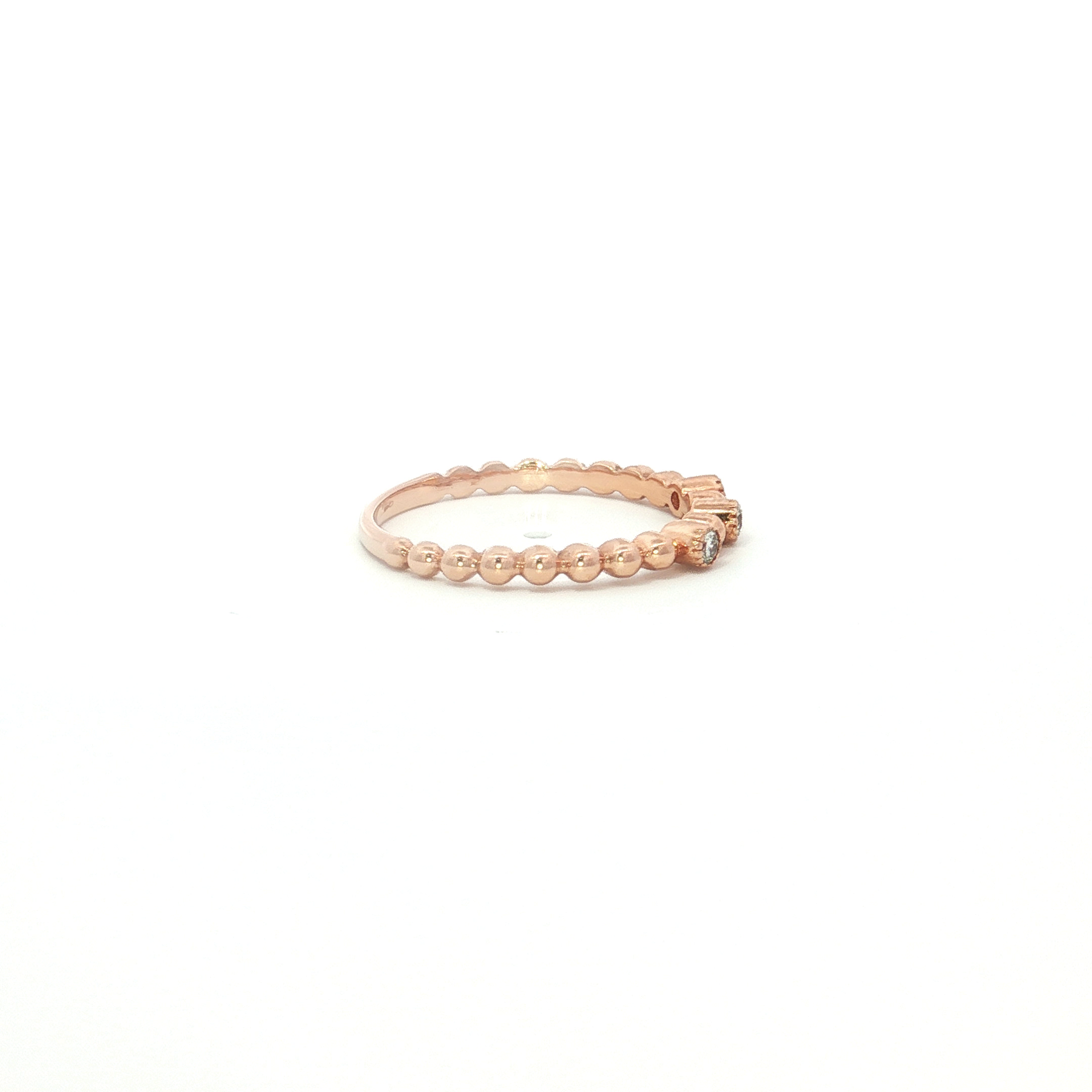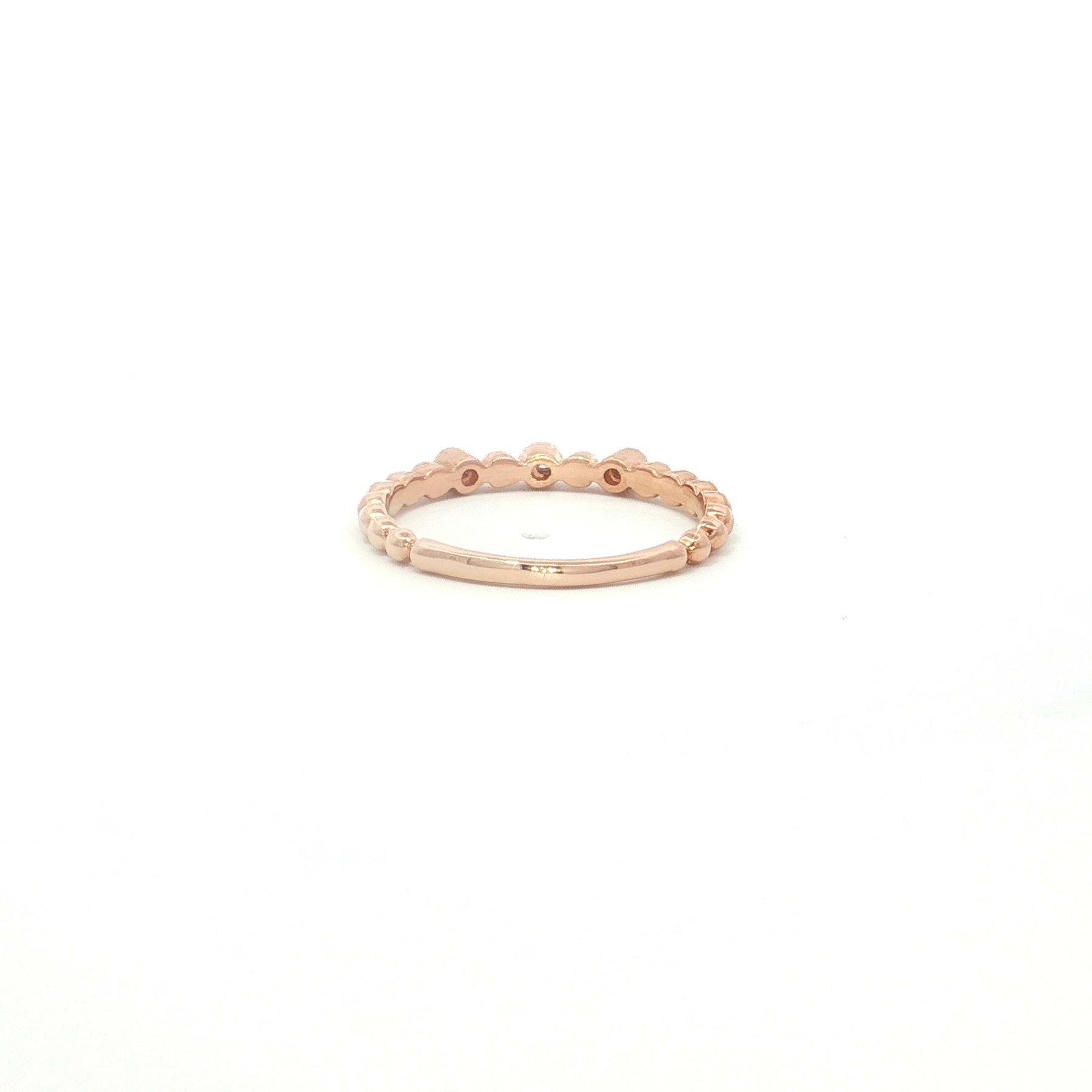 Elevate your style with this refined multistone ring, crafted from radiant rose gold. The band showcases a series of brilliant-cut, round diamonds set in a delicate, symmetrical arrangement. The impeccable polish and transparent stones add an elegant touch to this beautifully marked ring, perfect for adding a touch of sophistication to any ensemble.
