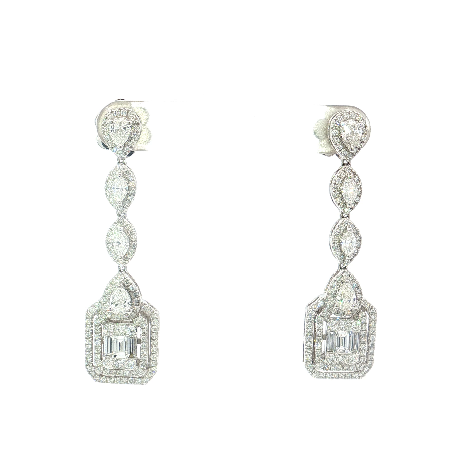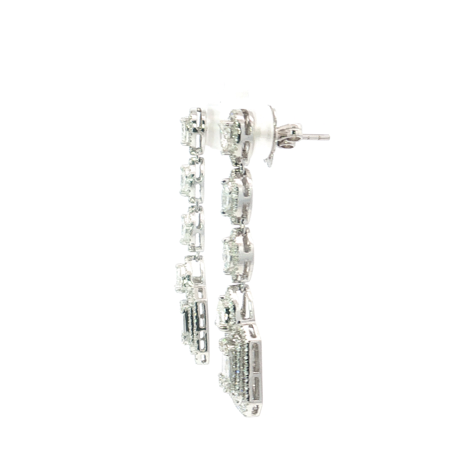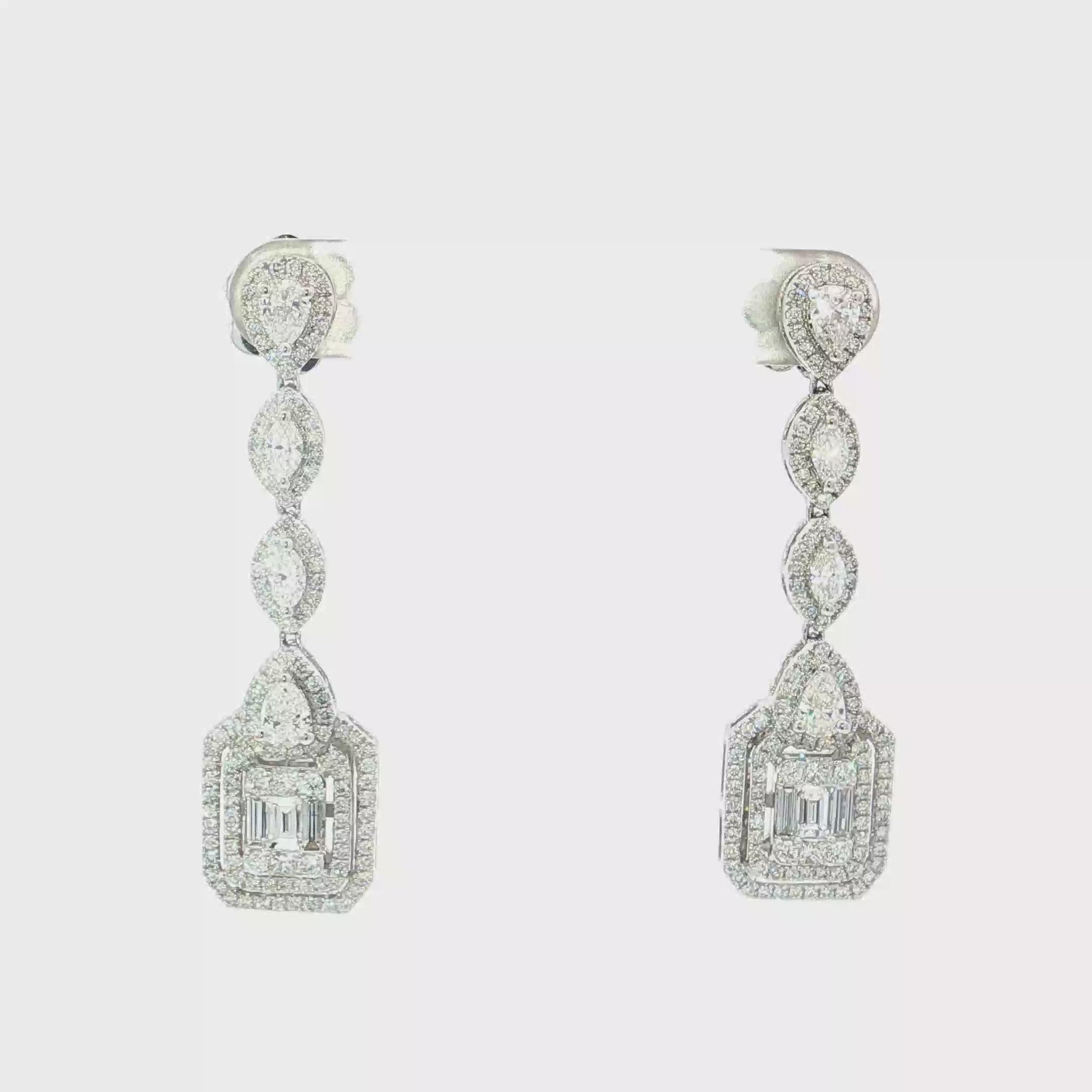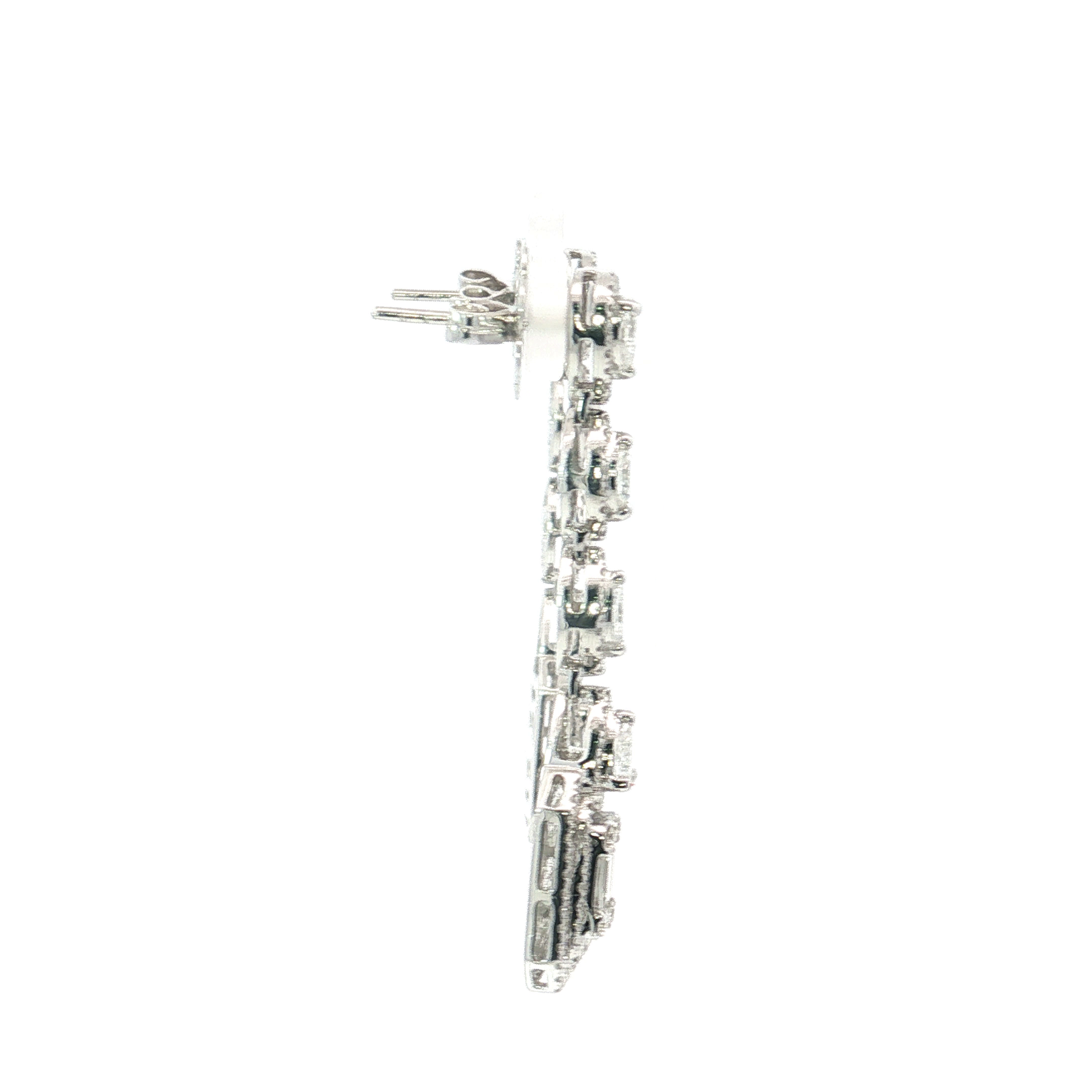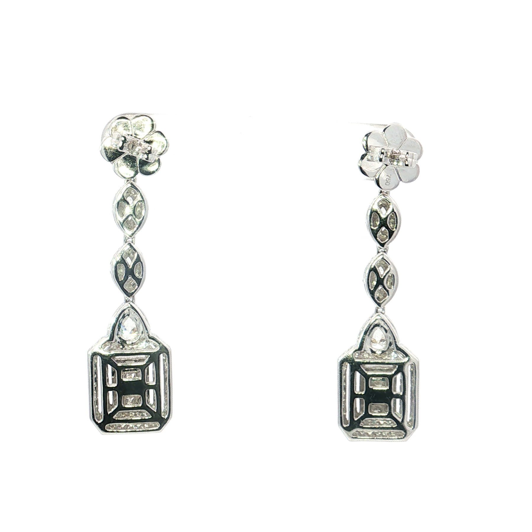 Elevate your style with these exquisite platinum dangle earrings featuring emerald-cut diamonds. The brilliant-cut design and sparkling clarity create a mesmerizing effect, making them the perfect accessory for any special occasion. These stunning earrings offer a touch of timeless elegance and sophistication.