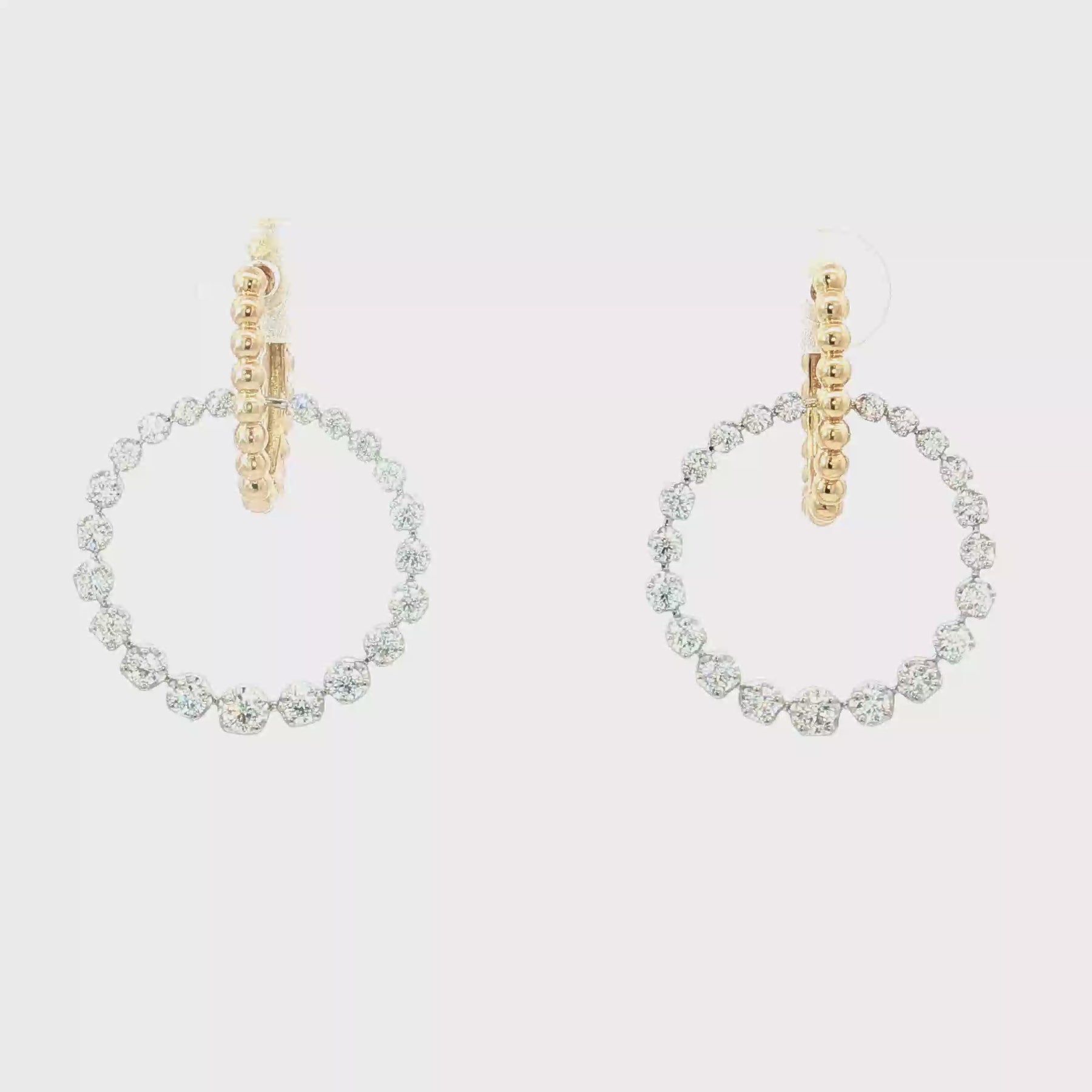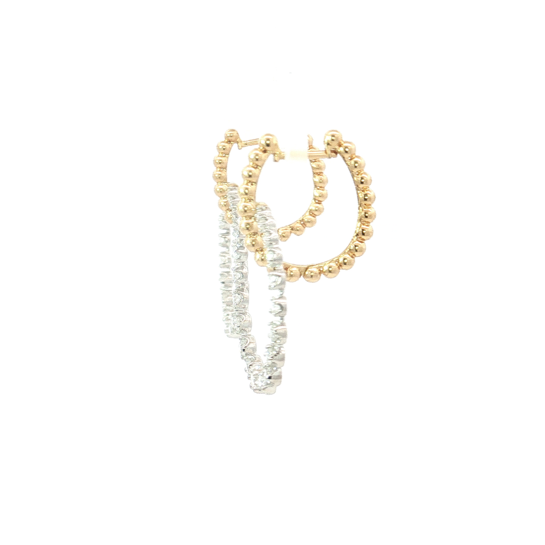 Yellow Gold Hoop Earrings with Round Brilliant Diamonds - C20746